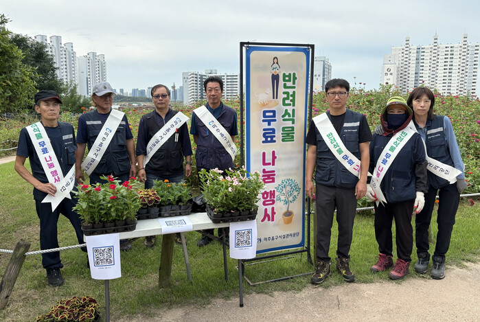 행사에서는 일일초, 메리골드, 코리우스 등 가을꽃 500본을 공원을 방문한 주민들에게 배부했으며, 동시에 온라인 설문을 통해 공원 운영과 관리에 대한 주민 의견을 수렴했다.