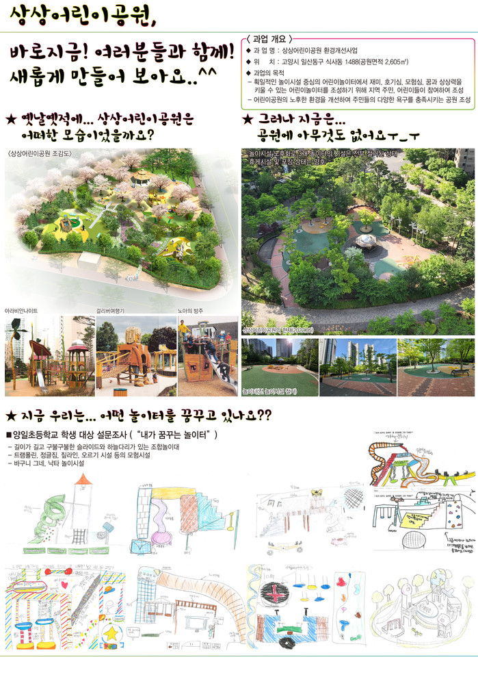 구 관계자는 “어린이의 상상력은 기발하고도 놀랍다”며 “아이들이 꿈꾸는 놀이터가 실현되도록 놀이터 조성에 최선을 다하겠다”고 말했다.