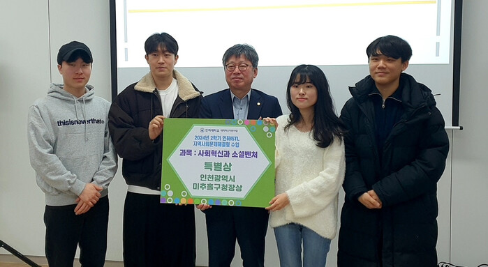 [인천=문찬식 기자] 인천 미추홀구(구청장 이영훈)는 19일 인하대학교 지역사회 문제해결형 수업 ‘인하 ISTL’에 참여한 학생들에게 지역문제 개선 방안을 모색한 공로로 특별상을 수여했다.