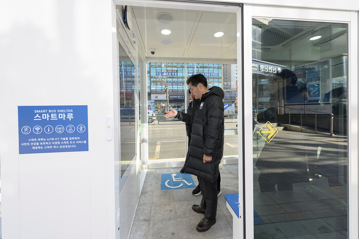 ‘스마트 마루’는 산의 꼭대기를 뜻하는 순우리말인 ‘마루’에 각종 미래 기술이 집약된 ‘스마트’를 결합한 것으로, 구민에게 안전하고 쾌적한 버스 대기 환경을 제공하겠다는 의미가 담겨있다.