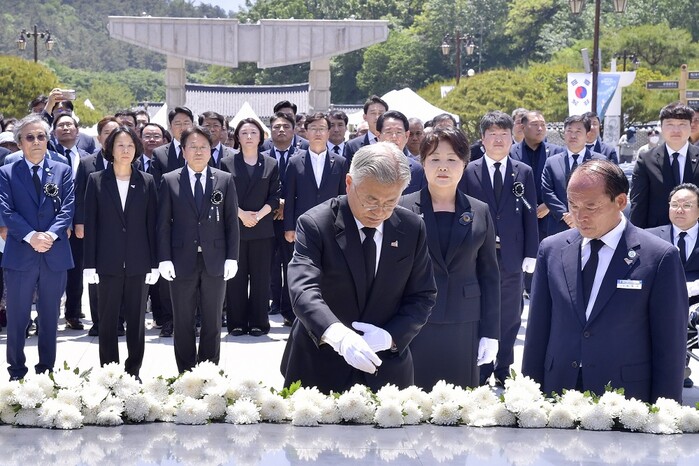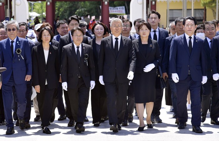 강기정 광주광역시장은 17일 문재인 전 대통령과 김정숙 여사, 김영록 전남도지사 등과 함께 국립5·18민주묘지를 참배했다.