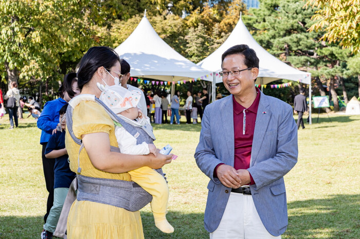 | ▲ 지난해 유아숲 가족축제에 참여한 최호권 영등포구청장. (사진=영등포구청 제공) |