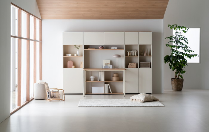 배치도 공간과 니즈에 따라 자유롭게 가능하다. 일자형(一)이나 에이치형(H)으로 책상 세트를 배치할 수 있고 필요에 따라 책장 모듈을 추가로 구성할 수 있다.