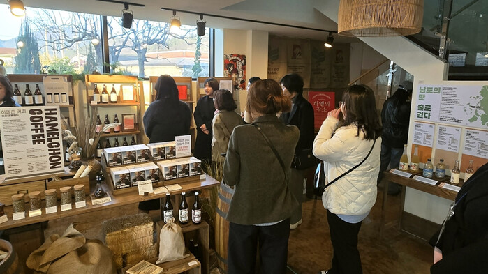 팝업스토어 공간은 방문객 동선과 체험 흐름을 고려해 ▲맥주 원료 체험 ▲ 하멜촌맥주+코리안 화이트 선물세트 구성 ▲브랜드·제품 소개(스토리) ▲맥주와 커피 시음·체험 ▲구매·상담 ▲‘남도의 맛, 술로 걷다’ 연계 콘텐츠로 구성했다. 특히 ‘남도의 맛, 술로 걷다’ 콘텐츠를 통해 남도 주류 소개를 함께 담았다.