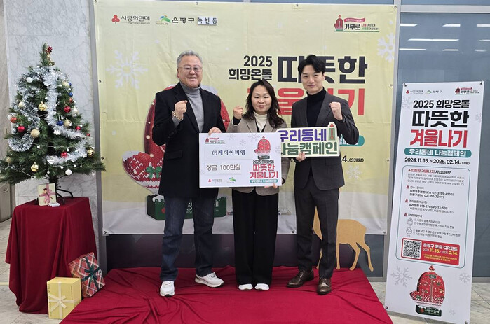 녹번동장은 “작년에 이어 올해도 귀한 성금으로 지역사회에 온기를 불어넣은 케이이비엠에 감사하다”며 “기탁받은 성금은 도움이 필요한 분들을 지원하는 데 사용될 수 있도록 최선을 다하겠다”고 밝혔다.