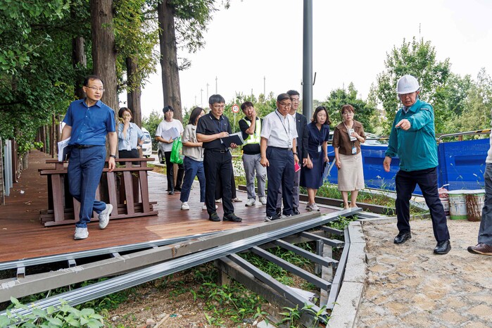 또한 구민들이 보다 편안하게 산책을 할 수 있도록 야자매트가 깔린 바닥을 목재데크로 변경 시공하고 가로등 20주를 이설해 야간에도 안전하게 보행할 수 있도록 할 예정이다.