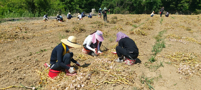 이날 일손돕기에는 농촌의 고질적인 인력난으로 마늘수확에 어려움이 있는 농가에 쌍백면사무소 직원 외 군청 주민복지과와 체육지원과 직원 30여명이 자발적으로 참여하여 마늘수확과 포장작업을 진행하였으며 뜨거운 햇볕 속에서도 구슬땀을 흘리며 농가 일손을 돕는데 최선을 다했다.