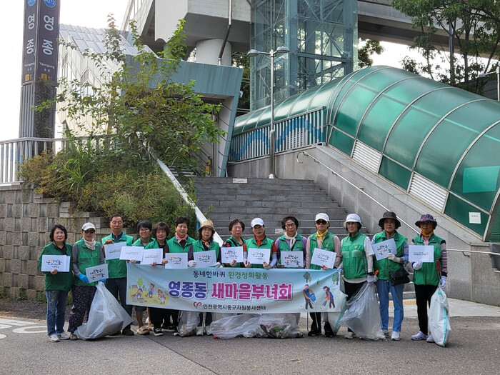하재설 새마을협의회장과 김은영 새마을부녀회장은 “기꺼이 봉사에 동참한 회원 여러분 덕분에 영종동이 더 깨끗해졌다”라며 “앞으로도 살기 좋은 마을을 만들기 위해 꾸준히 봉사활동을 이어가겠다”라고 말했다.