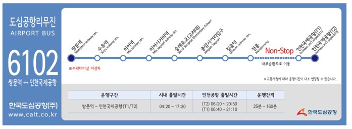 공항리무진 운수업체인 한국도심공항(주), 노선 승인권자인 서울시와 협의해 6102번 공항버스의 기점을 기존 수유역에서 쌍문역으로 변경했다.