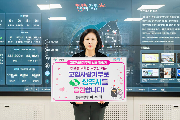 [시민일보 = 이대우 기자] 이수희 서울 강동구청장이 고향사랑기부제 활성화를 위해 ‘고향사랑기부 인증 챌린지’에 참여했다고 28일 밝혔다.