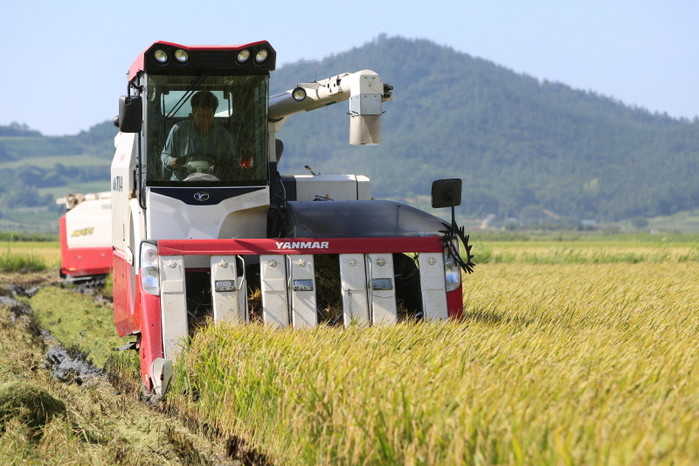 | ▲ 친환경 조생종 벼 수확 / 사진=해남군 제공 |