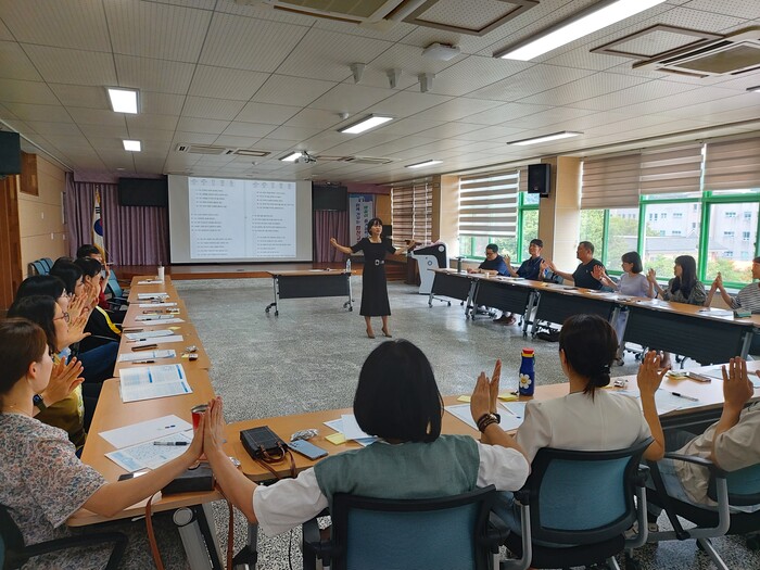 이번 연수는 통합교육지원의 일환으로 기획되었으며 P&I 교육코칭연구소 대표 여순화 박사가 ‘에니어그램! 관계를 말하다’를 주제로 강의하였다. 참석한 교사들은 에니어그램 성격검사를 실시하고 심리 프로파일 분석을 통해 자신의 내면을 성찰하고 성격의 기조를 이해하는 시간을 가졌다.