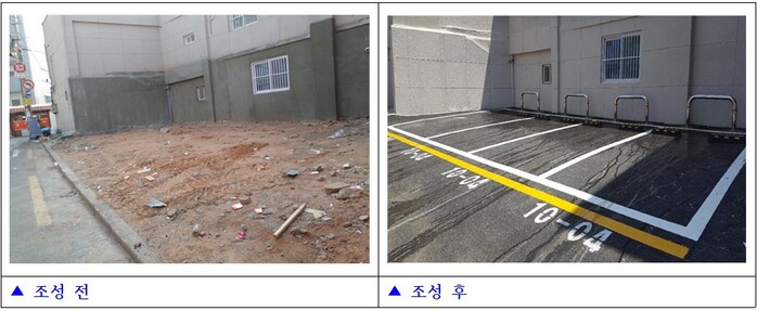 | ▲ 자투리땅을 활용해 주차장을 조성한 사례(가리봉동). (사진=구로구청 제공) |