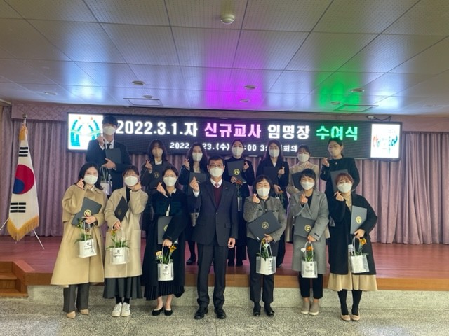합천교육지원청(교육장 정종화)은 2월 23일(수) 합천교육지원청 3층 대회의실에서 2022.3.1.자로 발령받은 15명의 유·초·중등 신규교사를 대상으로 임명장 수여식을 가졌다.