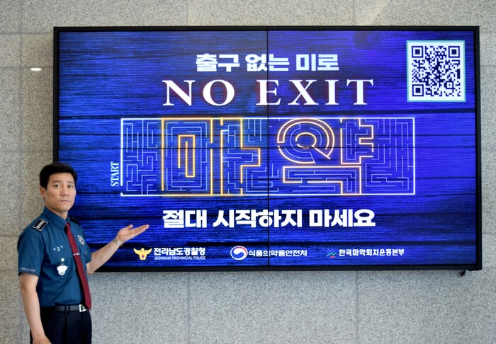 [목포=황승순 기자]목포경찰서(서장 이준영)는 최근 마약 중독에 대해 환기하고, 경각심을 고취해 마약범죄를 예방하고자 하는 ‘NO EXIT 마약 릴레이 캠페인’에 참여했다고 밝혔다.