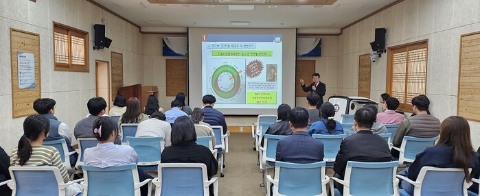 | ▲ 강진군청, 지난 23일 군청 대회의실에서 공직자 대상 지속가능발전목표 활성화 교육 / 강진군 제공 |
