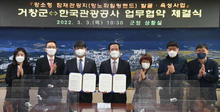 거창군은 3일 군청 상황실에서 한국관광공사 경남지사와 강소형 잠재관광지 발굴 및 육성을 위한 업무협약을 체결했다.