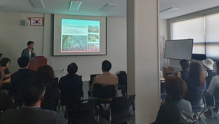 | ▲ 사진설명: 삼문동행정복지센터에서 용역사가 정비계획안을 설명하는 모습. (사진=밀양시청 제공) |