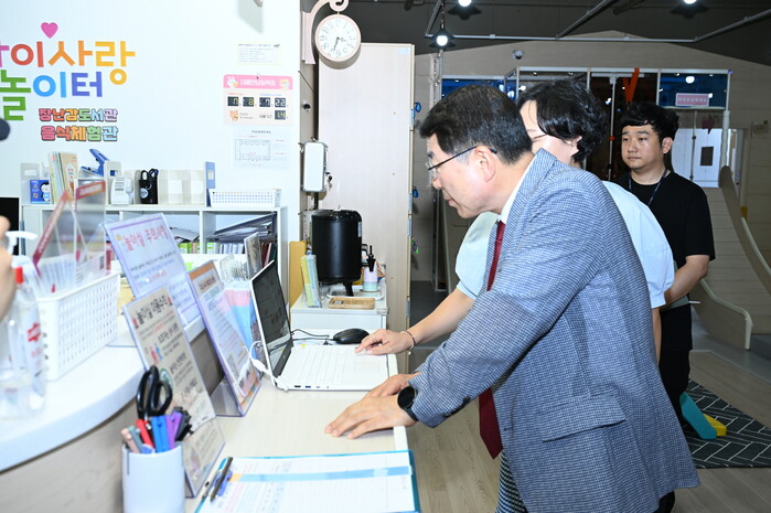 이번 점검은 갈매동 하나로프라자 8층에 조성된 어린이 체험장과 장난감도서관 운영 사업을 대상으로 진행되었으며, 백경현 시장을 비롯한 해당 부서장, 기획예산담당관 등 관계자들이 참석했다.