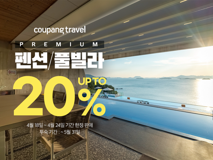 [시민일보 = 홍덕표 기자] 쿠팡의 여행상품 전문관 ‘쿠팡트래블’이 프리미엄 펜션 및 풀빌라를 오는 24일까지 최대 20% 할인 특가에 선보인다.