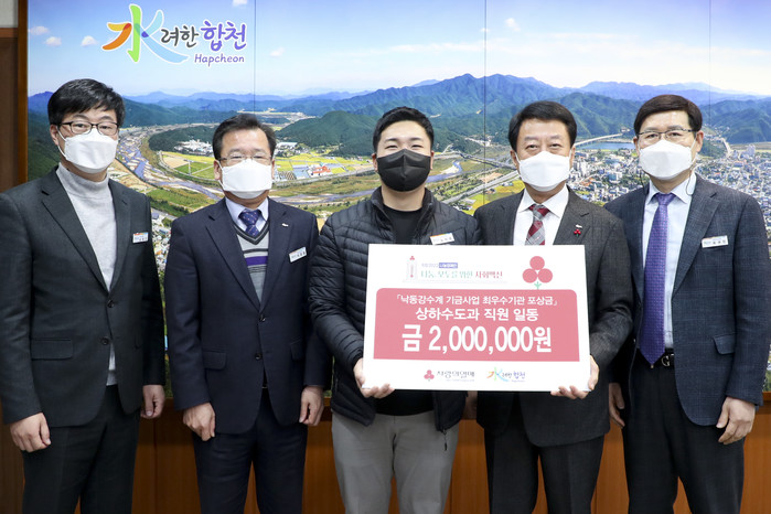 합천군(군수 문준희)은 4일 군청 최규진 상하수도과장 외 직원들이 군수실을 방문해 낙동강유역환경청으로부터 받은 포상금 일부를 어려운 이웃에게 써달라며 200만원을 기탁했다고 4일 밝혔다.