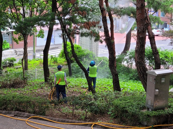이번 방제는 여름철 병·해충으로 인해 발생할 수 있는 수목의 고사나 미관 저해 등의 피해를 예방하고, 생활지역과 밀접해 있는 녹지대에 급증한 모기로부터 주민들이 겪는 불편을 해소하고자 마련됐다.