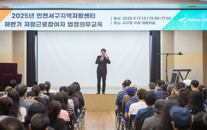 [인천=문찬식 기자] 인천 서구(구청장 강범석)는 지난 17일 인천서구지역자활센터(센터장 조영정)가 자활사업단 참여자 180여 명을 대상으로 하반기 법정의무교육을 실시했다고 18일 밝혔다.
