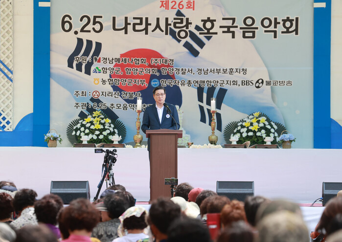 진병영 함양군수는 추모사를 통해 “호국음악회를 통해 호국영령들의 넋을 조금이라도 위로할 수 있기를 기원하며, 6·25 참전용사들과 유가족들에게 조국을 위한 헌신에 깊은 감사를 드린다”라고 말했다.