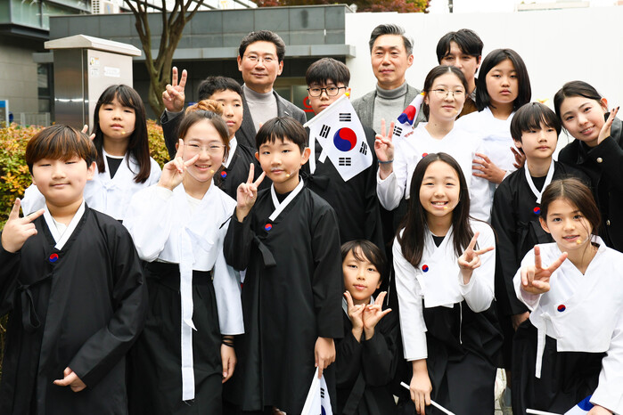 이날 행사에선 광복 80주년을 맞아 용인을 대표하는 독립운동가 고(故) 오희옥 지사에게 바치는 헌정곡 ’13살 소녀의 이야기‘ 헌정식과 공연도 진행됐다. 이 시장은 헌정식에서 오 지사의 아들 김흥태씨와 함께 무대에 올라 공연을 준비한 청소년들이 쓴 편지와 엽서 60여 장을 전달받았다.