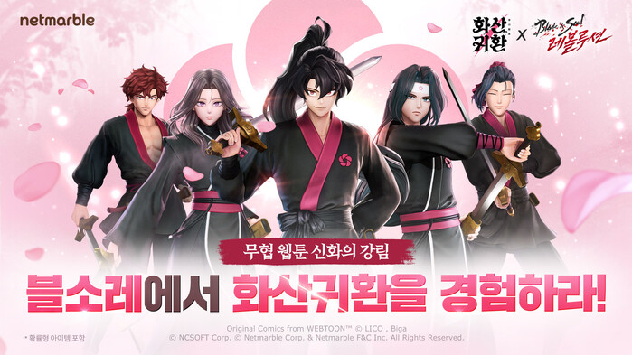 ‘화산귀환’은 동명의 웹소설을 원작으로 화산파 제자 ‘청명’이 마교 교주와의 대결에서 사망한 후, 100년 뒤 환생해 몰락한 화산파를 재건하는 과정을 그린 인기 무협 회귀물 웹툰이다. 무협을 소재로 한 <블레이드 & 소울 레볼루션>과의 높은 시너지를 바탕으로 이번 콜라보레이션이 성사됐다.