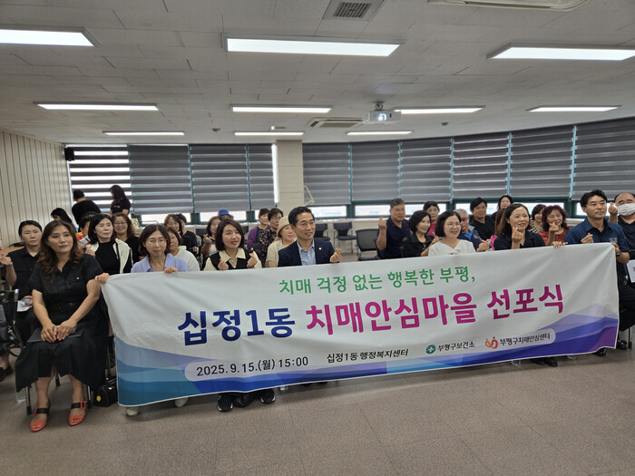 [인천=문찬식 기자] 인천 부평구(구청장 차준택)는 십정1동을 지난 15일 ‘제4호 치매안심마을’로 지정하고 십정1동 동 행정복지센터에서 선포식을 개최했다.
