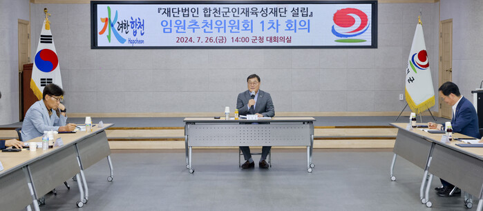 이번 회의에는 김윤철 군수와 임원추천위원회 위원 6명이 참석했으며, 위촉장 수여, 임원추천위원회 위원장 선출, 합천군인재육성재단 임원 모집계획안 의결 순으로 진행됐다.