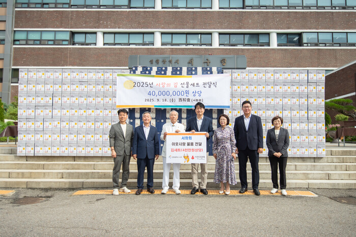 서구 유관기관장과 기업체 대표들로 구성된 서화회는 이날 서구청 현관에서 ‘사랑의 김’ 세트(4천만 원 상당)를 전달했으며, 전달받은 김은 관내 저소득 가정과 홀몸 어르신 등 경제적으로 어려운 이웃들에게 우선 배부할 계획이다.