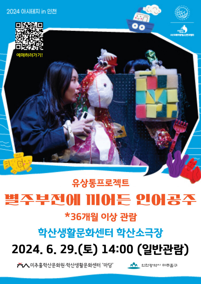미추홀학산문화원(원장 정형서)은 3년 연속으로 ‘아시테지 인(in) 인천’에 참여, 학산소극장에서 떠오르는 신예로 주목받는 유상통프로젝트의 ‘별주부전에 끼어든 인어공주’를 오는 6월 28일(금) 9시 30분, 11시, 6월 29일(토) 11시에 공연할 예정이다.