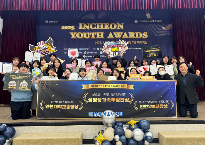 [인천=문찬식 기자] 인천 남동구 남동청소년센터는 소속 청소년 활동 참여‧자치기구가 인천시청에서 열린 ‘2025년 우수 청소년 활동 시상식(인천 유스 어워즈)’에서 성평등가족부 장관상을 포함해 총 8개 부문에서 수상했다고 26일 밝혔다.