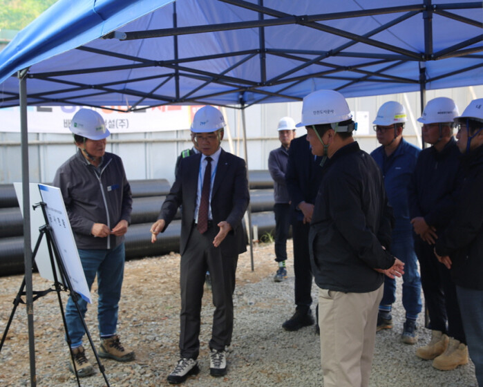 | iH 류윤기 사장이 사업 현장을 방문, ‘중대 재해 예방'에 대한 철저한 관리를 당부하고 있다. (사진=인천도시공사) |