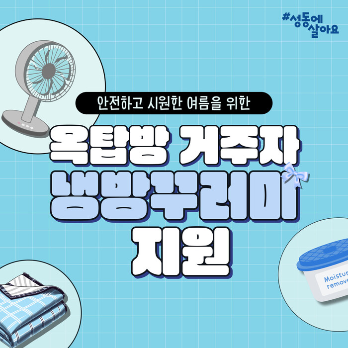[시민일보 = 이대우 기자] 서울 성동구(구청장 정원오)는 폭염에 취약한 옥탑방 거주 가구의 안전한 여름나기를 위해 ‘냉방꾸러미’를 지원한다.
