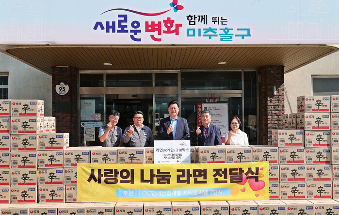[인천=문찬식 기자] 인천 미추홀구(구청장 이영훈)는 지난 12일 HDC현대산업개발 시티오씨엘 7단지로부터 저소득 가정을 위한 라면 210상자(40개 입)를 전달받았다.