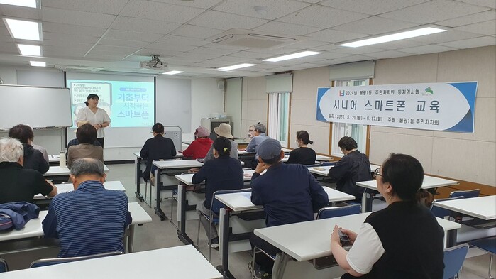 [시민일보 = 이대우 기자] 서울 은평구(구청장 김미경) 불광1동은 최근 불광1동 주민자치회 주관으로 참여예산 동 지역사업 ‘시니어 스마트폰 교육’ 사업을 진행했다고 밝혔다.