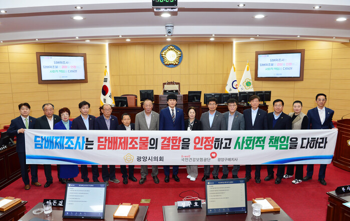 [광양=황승순 기자] 전남 광양시의회가 최근 열린 제336회 임시회 제1차 본회의에서 ‘담배 제조물의 결함 인정 및 사회적 책임 촉구 결의안’을 채택하고, 담배 제조사에 대해 제품의 유해성 정보와 건강 피해에 대한 사회적 책임을 이행할 것을 강력히 촉구했다.