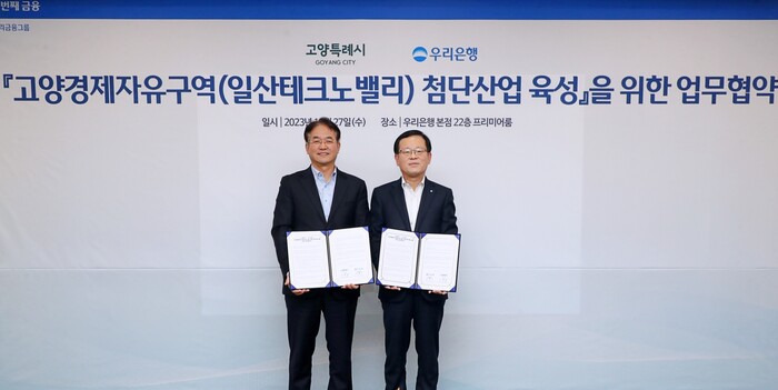 [시민일보 = 홍덕표 기자] 우리은행은 지난 27일 고양특례시와 ‘고양경제자유구역(일산테크노밸리) 첨단산업 육성을 위한 협약’을 체결했다고 28일 밝혔다.