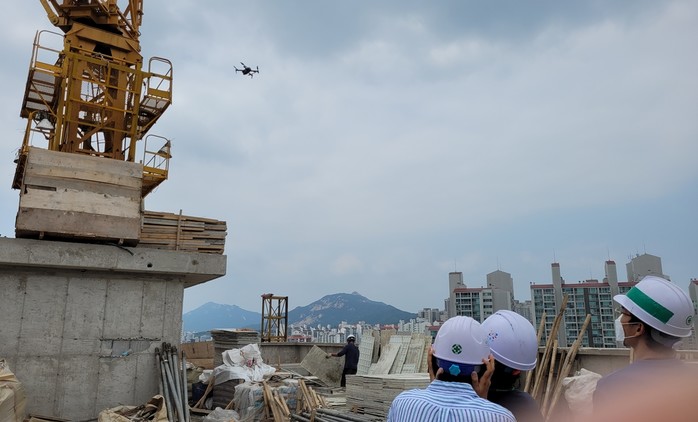 이번에 중점적으로 점검한 것은 중·대형 공사장 타워크레인으로, 여름철 집중 호우와 태풍에 대비해 연결 부위의 마스터 볼트, 와이어로프의 상태를 드론으로 촬영해 점검했다.