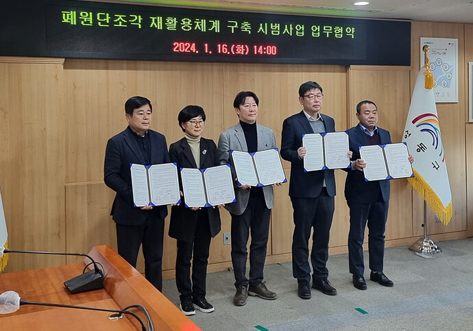 이번 협약을 통해 구는 폐원단조각을 체계적으로 재활용할 수 있게 됐다.