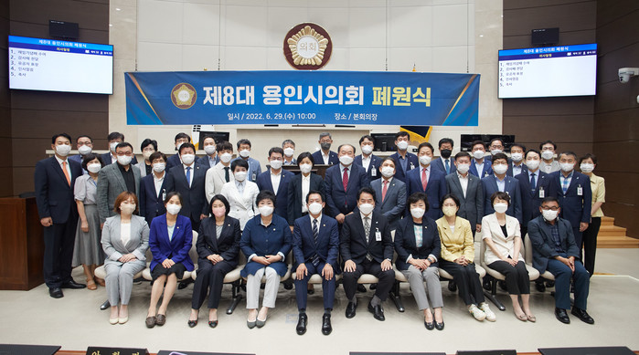 한편, 제8대 용인시의회 의원은 29명(지역구 의원 26명, 비례대표 3명)으로 2018년 7월 1일부터 2022년 6월 30일까지 4년간 110만 시민의 목소리에 귀 기울여 다양한 의정활동을 펼쳐왔다. 제225회 임시회부터 제263회 임시회까지 정례회 8회, 임시회 31회 총 39회 365일 동안의 회기 기간에 의원발의 조례 146건을 포함한 조례 508건, 예산·결산안 68건, 동의·결의·건의안 193건 등 총 1007건의 안건을 처리했다.