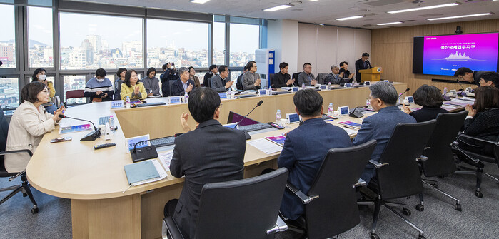 | ▲ 지난 1월31일 구청 9층 스마트회의실에서 열린 용산국제업무지구 개발 계획안 보고회. (사진=용산구청 제공) |
