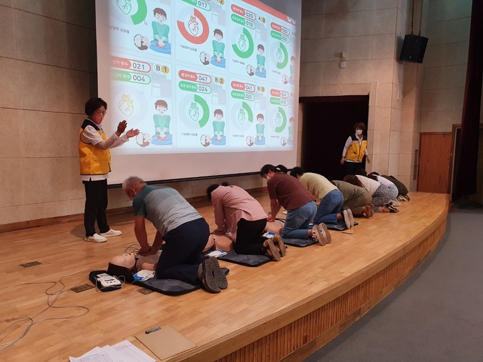 경기 여주시는 안전취약계층을 대상으로 ‘찾아가는 취약계층 안전교육’을 진행하고 있으며, 최근 어린이와 어린이 이용시설 종사자를 대상으로 어린이 응급상황 대처를 위한 안전실습교육을 실시했다. 사진은 이날 어린이 위급상황 대응을 주제로 CPR 실습 등이 진행되고 있는 모습. (사진제공=여주시청)