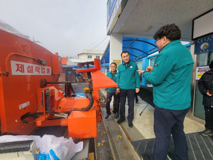 이재철 부군수는 수방 자재 창고를 방문해 제설 자재의 적정 수량 확보와 보관 상태를 점검하고, 대설 발생 시 사용할 배토판과 제설재 살포기 등의 장비 가동 상태를 확인하며 신속한 재난 대응을 위한 준비 태세 강화를 당부했다.