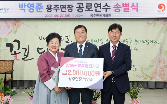 이날 박영준 용주면장은 “오랜 공직생활을 마무리하며 군민들에게 받은 사랑에 보답하고, 합천의 미래를 이끌어갈 학생들이 학업에 정진할 수 있도록 조금이나마 도움이 되고자 한다”고 기탁 소감을 밝혔다.