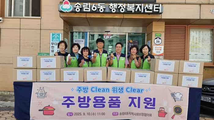[인천=문찬식 기자] 인천 동구 송림6동 지역사회보장협의체(민간위원장 구재중)는 지난 10일 관내 취약계층 및 장애인 20세대를 대상으로 ‘주방 Clean 위생 Clear, 주방용품 지원 사업’을 진행했다고 밝혔다.