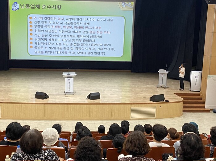 이번 연수는 식재료 검수에서부터 배식까지 학교급식 전반의 위생·안전관리 방안과 친절‧청렴 교육으로 구성돼, 학교 현장에서 실제로 발생할 수 있는 문제들을 중심으로 진행됐다. 교육은 학교급식의 질적 향상을 위해 실질적인 방안을 제시하며, 현장에서 자주 간과될 수 있는 부분들을 재점검하는 계기를 마련했다.
